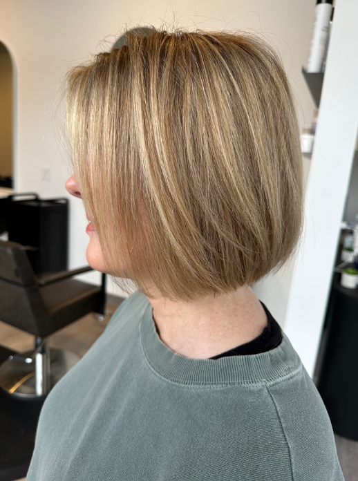 “My experience at this salon was fantastic! The stylist did an amazing job highlighting and cutting my hair. It was my first time here, and I loved everything about my visit. Scheduling was easy, and the salon has a minimal, clean, and welcoming vibe. The staff are great - easy to talk to and really thoughtful. I received a short bob, and it turned out exactly how I wanted! Can't wait for my next visit."